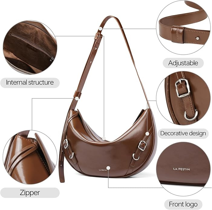 • 【Exquisite Craftsmanship and Durability】: Elevate Your Style with LA'FESTIN.The shoulder hobo bag is a testament to unparalleled quality. Expertly crafted from genuine cow leather, each piece is a labor of love by skilled artisans, ensuring a luxurious texture and a touch of sophistication. The bag's interior boasts a durable fabric lining that complements the exterior, adding a layer of comfort and longevity.