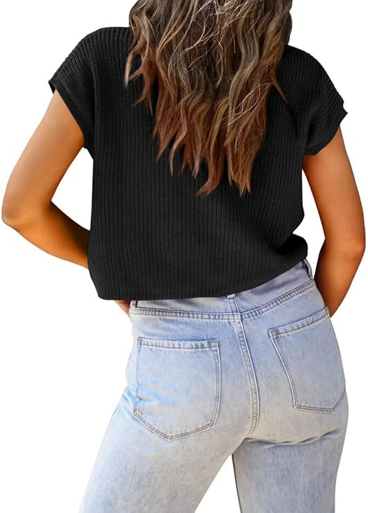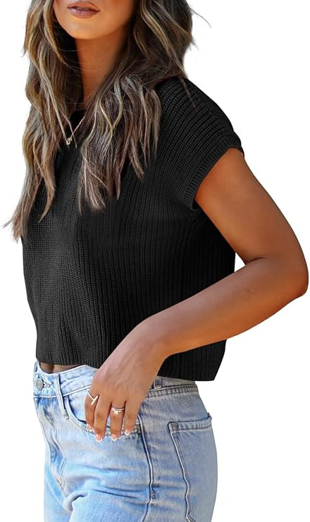 LCXWFE Womens Summer Cropped Sweater Vest Trendy Cap Sleeve Crop Tops Crew Neck Loose Knit Tank Top
