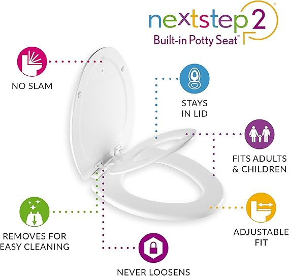 Mayfair NextStep2 Toilet Seat with Toddler Potty Training Seat Built-In, Slow Close, Easy Clean, Magnetic Removable Kids Seat, ELONGATED, White