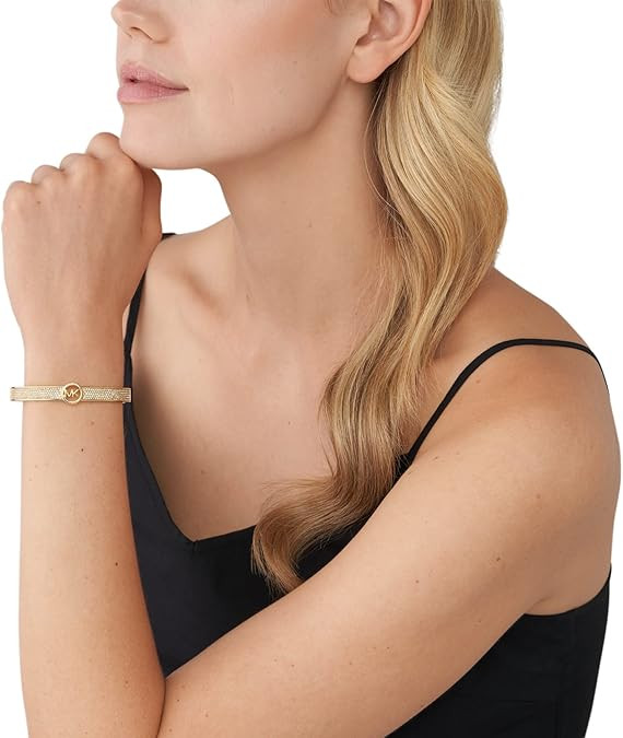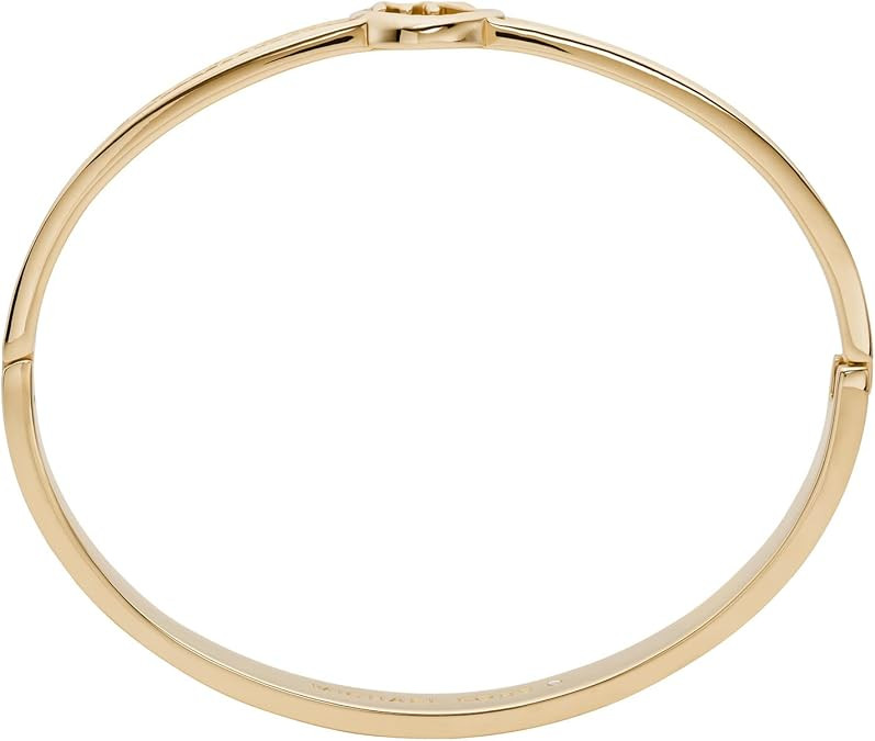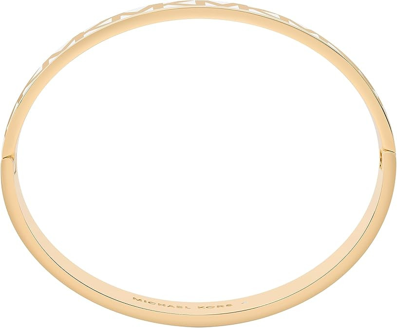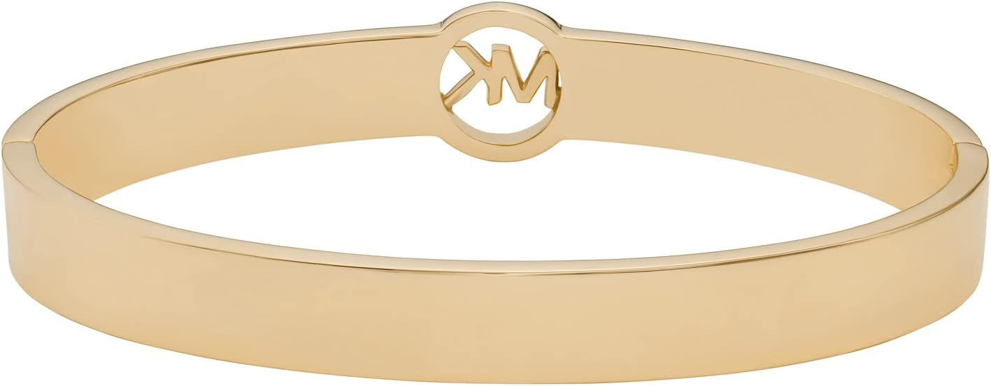 Michael Kors Brass and Pavé Crystal MK Logo Bangle Bracelet for Women, Color: Gold (Model: MKJ8003710)