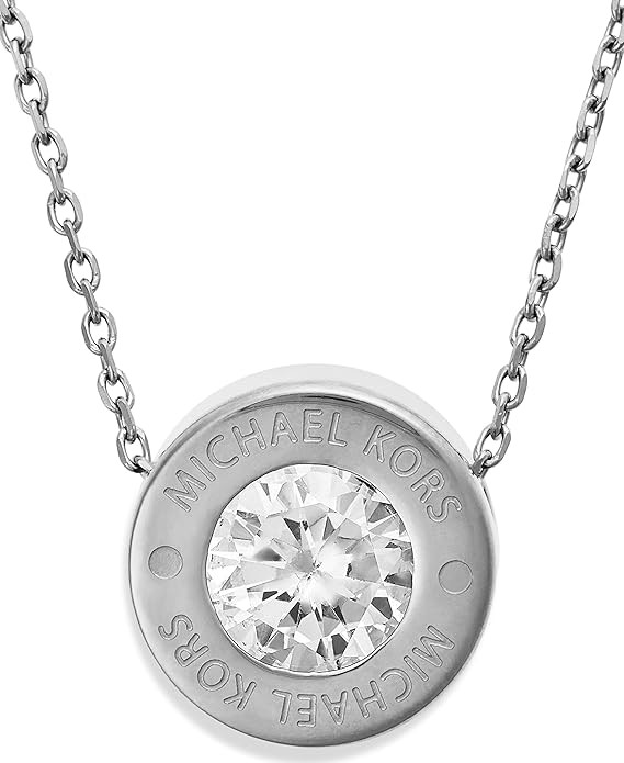Michael Kors Stainless Steel and Pavé Crystal Pendant Necklace for Women, Color: Silver (Model: MKJ5341040)
