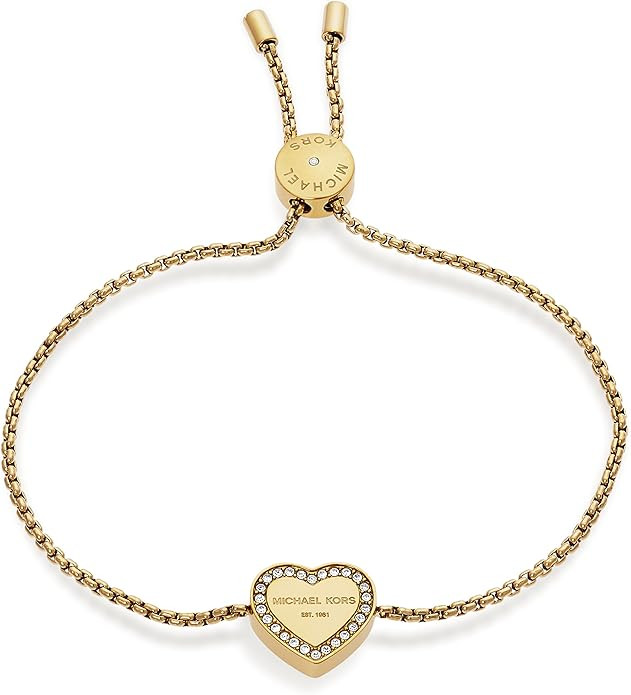 Michael Kors Stainless Steel and Pavé Crystal Signature Heart Chain Bracelet for Women, Color: Gold (Model: MKJ5389710)
