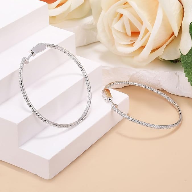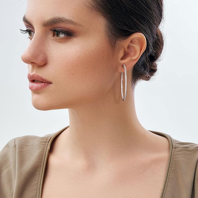 Moissanite Hoop Earrings for Women S925 Sterling Silver D Color VVS1 Round Cut Lab Created Moissanite Earrings Inside Out Round Loops Earrings Hypoallergenic Large Huggie Hoop Earrings