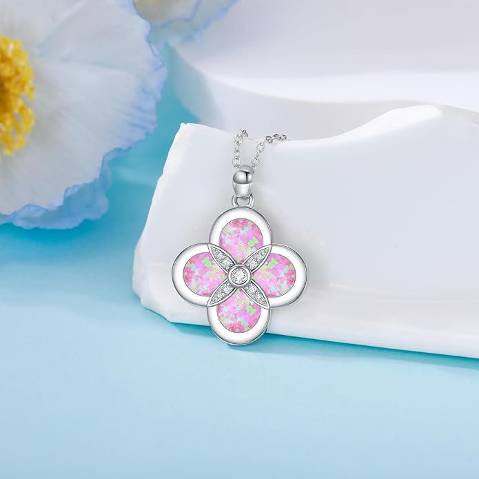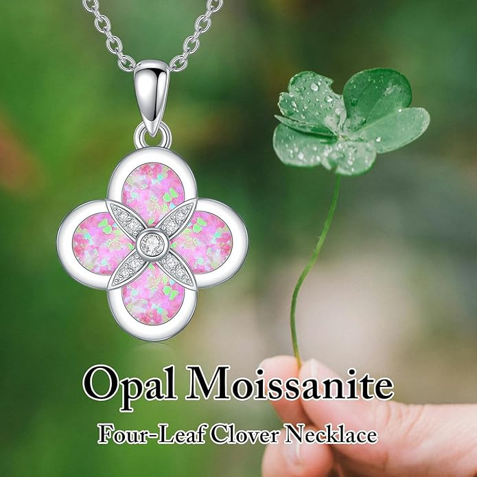 • 【Material】This beautiful four leaf clover necklace is made of the finest metal and has a high degree of polish. Four leaf clover inlaid opal and set with some moissanite in the middle,tarnish resistant,nickel-free,lead-free,cadmium-free,safe for your sensitive skin.
