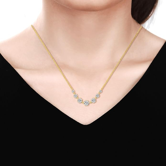 Moissanite Pendant Necklace for Women with 18K Yellow Gold, 1.32Ct DF VVS Clarity Lab Created Moissanite Choker Necklace with Charm, Sterling Silver Necklace for Wedding Promise Engagement