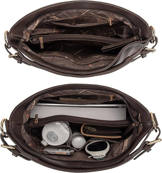 • Large purses for women have 2 inside main compartments, 2 zipper pockets, 11 slip pockets for wallet.