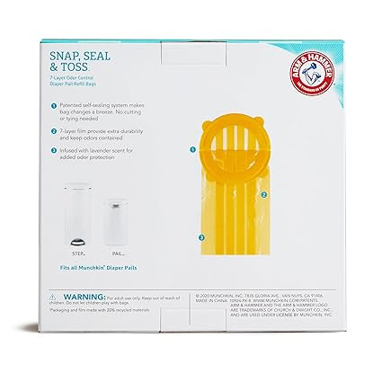 Munchkin® Arm & Hammer Diaper Pail Snap, Seal & Toss™ Refill Bags, Holds up to 600 Newborn Diapers, 20 Pack