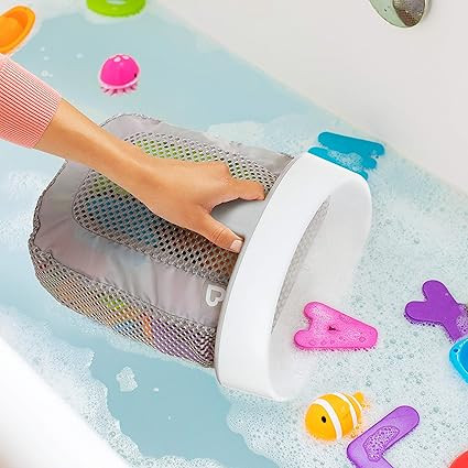 • Keep your tub tidy and toys contained with the hanging bath toy storage with quick drying mesh