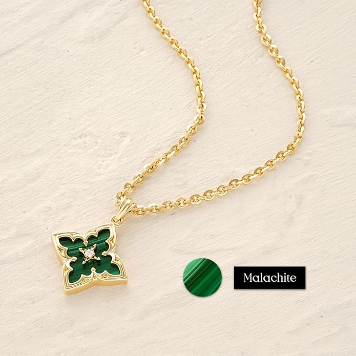 MYEARS Women Star Necklaces Gold Pendant Natural Stone Cubic Zirconia 14K Gold Plated Simple Dainty O Link Chain Everyday Trendy Jewelry