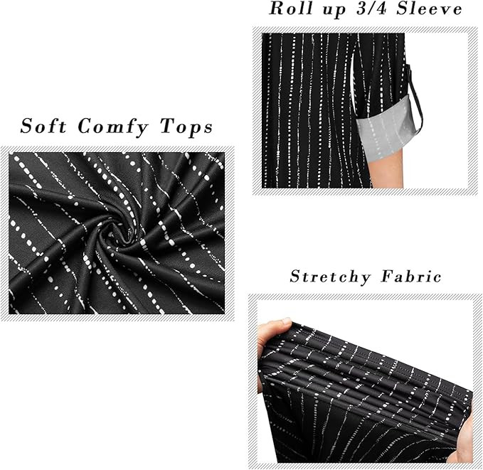 • Womens Blouse Tops dressy casual / Work business professionals Shirts for women fashion new design for Spring/Summer/Fall/winter Seasons, these womens tops are perfect to wear year-round.Notch V-neck blouses with center-front pleat are flattering to hiding a bit of a tummy, 3/4 sleeve blouse for elegant lady office attire