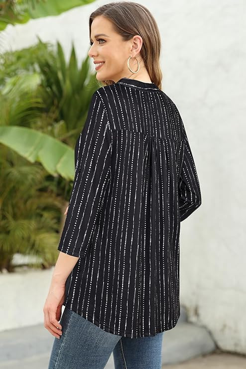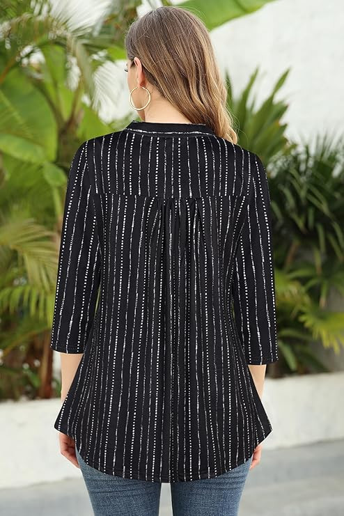• 3/4 sleeve shirts for women/ Casual workwear and basic loose fitting Tunic blouse /v neck loose flare waist shirts/ cute simple design chic and charming blouse, it will swept you off your feet, the perfect length with the flowy hem is easy to go with your leggings, jeans, pants and shorts