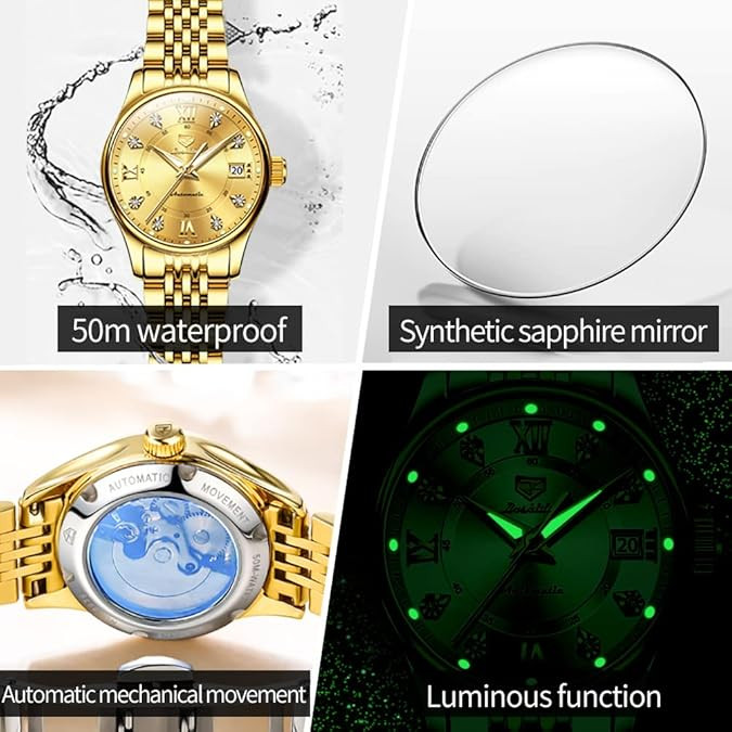【Elegant Automatic Women Watch】 luxury classic design, this ladies watch adopts the original mechanical movement, no Battery, our classic simple ladies wrist watch will be greatly suitable for any occasion, Comfortable stainless steel strap brings you a comfortable wearing experience.
