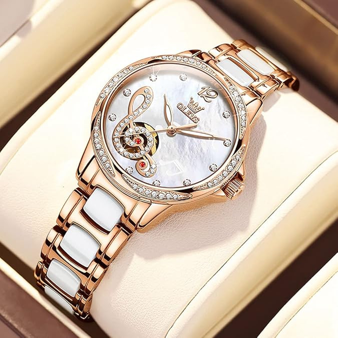 ?Diamond Automatic Watches for Women:Fashion rose gold skeleton romantic music note design, express elegant and luxury everywhere. Brilliant diamond are inlaid on the dial case, making this ladies watch even more dazzling.