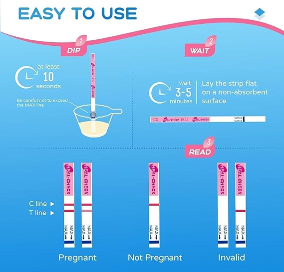 OVER 99% ACCURACY: Our pregnancy tests strips are tested by professional laboratories and are over 99% accurate, Levels of hCG as low as 25 mIU/ml can be detected at 3-5 minutes, and the HCG test strips are precise and give you the security you need