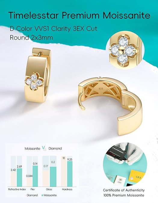 • ?{Top-Grade Moissanite} The moissanite earrings is craft using top grade 100% moissanite (D Color VVS1 Clarity 3EX Cut) lab created diamond earrings with mohs 9.25, and its fire is 2.5 times that of a nature diamond, selected by Timelesstar used in fine jewelry. This is a fashion moissanite earrings for women.