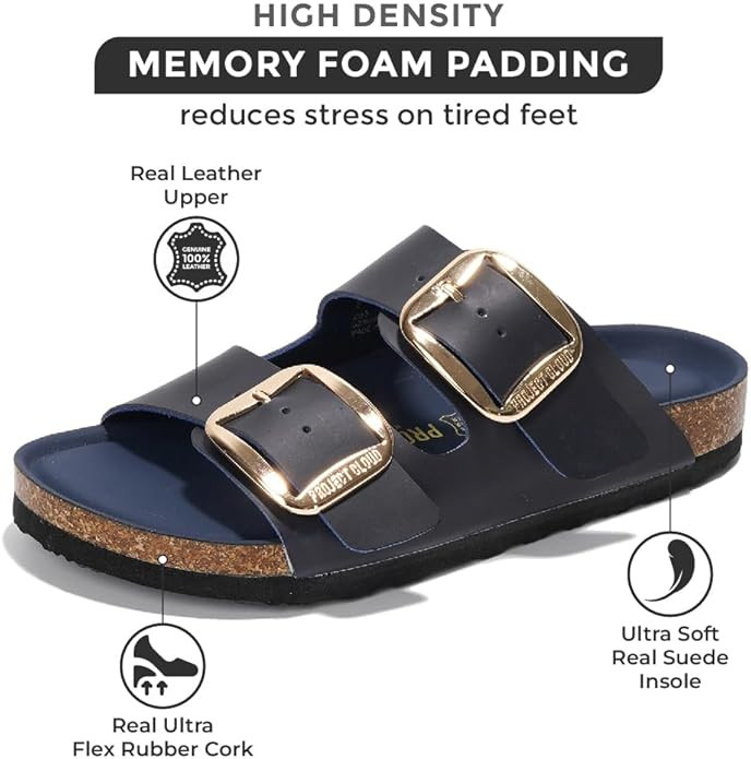 Project Cloud Genuine Leather Flat Sandals Comfortable Beach Essentials Womens Sandals Memory Foam Vacation Essentials Slides for Women Footwear (Santorini)
