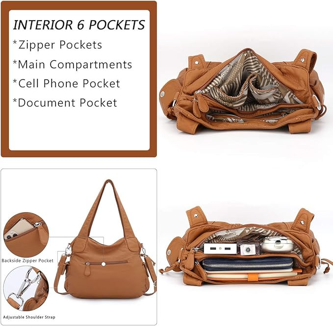 • 【Material】: High Quality Soft Washed PU leather handbags shoulder tote bags; Durable and fashionable,anti-scratch and tear-resistant,not easy to be out of shape,very easy to wipe clean. Front U-shaped sewing design, reinforced bottom with special hook decoration, two Side pockets make the hobo bag more unique handbags for women daily use.