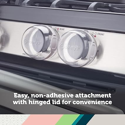 • These clear Safety 1st plastic covers install easily and fit over your stove knobs to keep children from turning them. Simply pop open the cover's hinged lid to access the knob when it's time to cook.