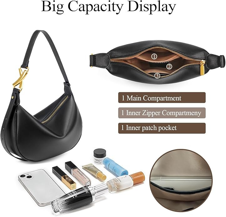 Shoulder Bags for Women, Genuine Leather Crossbody bags purses, Crescent Handbags with an Adjustable Strap