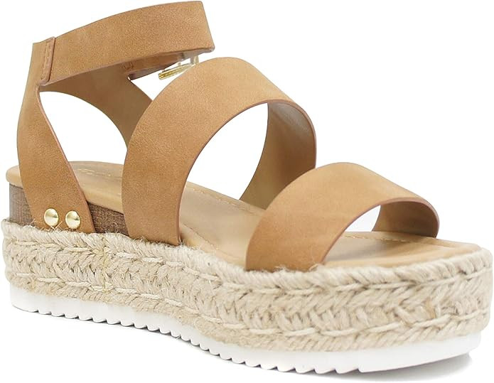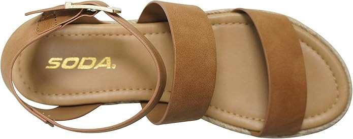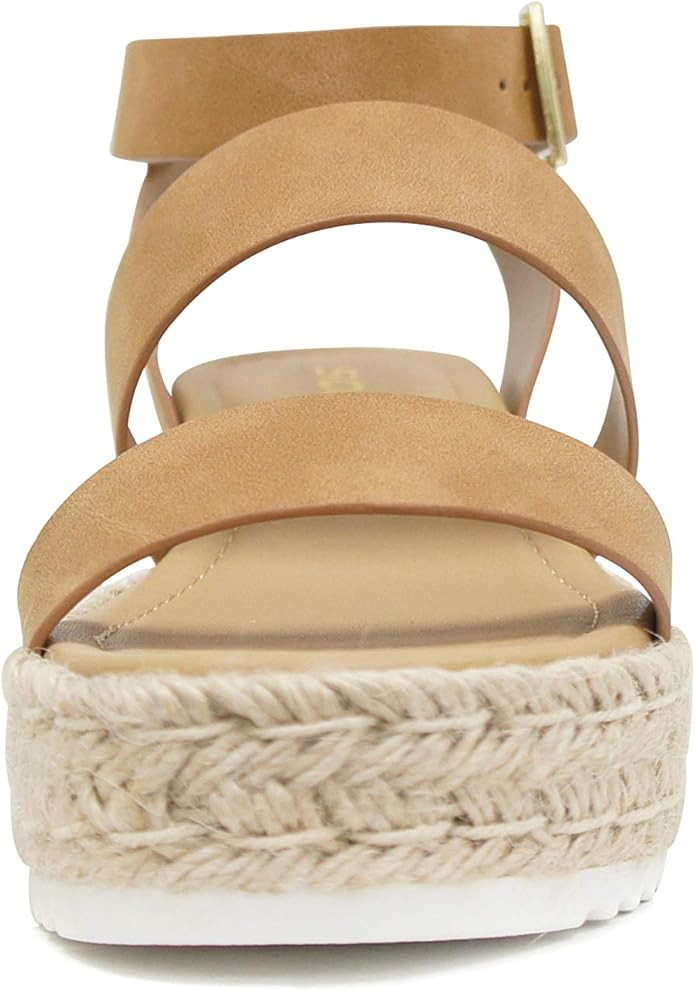 Soda Top Shoe Bryce Open Toe Buckle Ankle Strap Espadrilles Flatform Wedge Casual Sandal