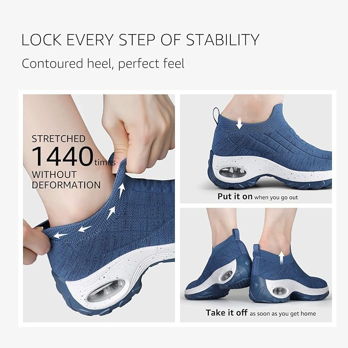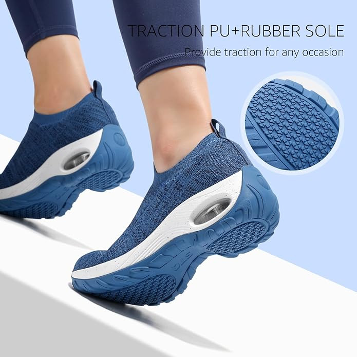 STQ Womens Slip on Walking Shoes Breathable Non Slip Work Shoes Comfortable Air Cushion Orthopedic Sneakers with Arch Support