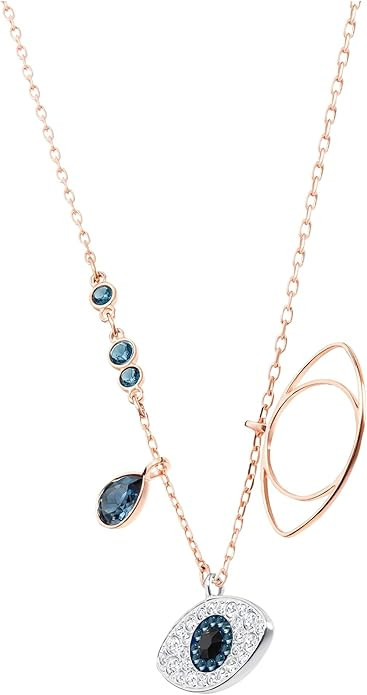 • Items delivVersatile and eye-catching: Whether an everyday accent or a unique, conversation-starting accessory, this Evil Eye pendant necklace is a simple piece that will complement any look on any occasionered: 1 x Swarovski Symbolic Collection Evil Eye Pendant, 14 7/8 inch rose-gold plated mixed metal chain, 3/4 x 5/8 inch blue, black and clear crystal pendant, with Swarovski necklace box