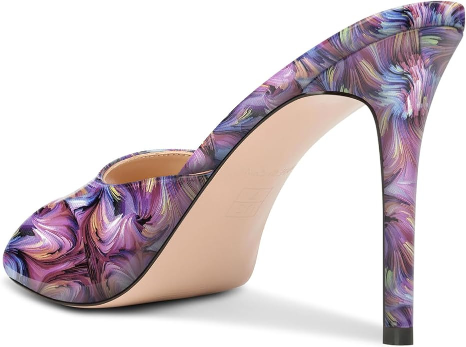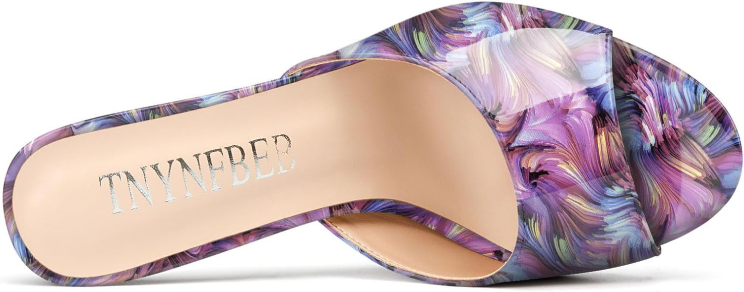 TNYNFBEB Womens Stiletto High Heel Peep Open Toe Sandals Mules Shoes Slingback Slip-on Prom Party Dress Patent Leather 3.9 Inches Heels