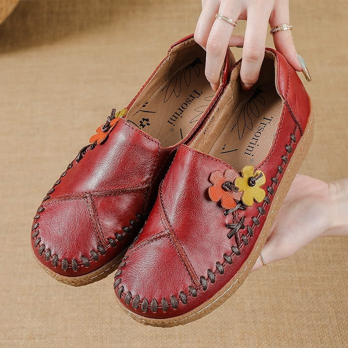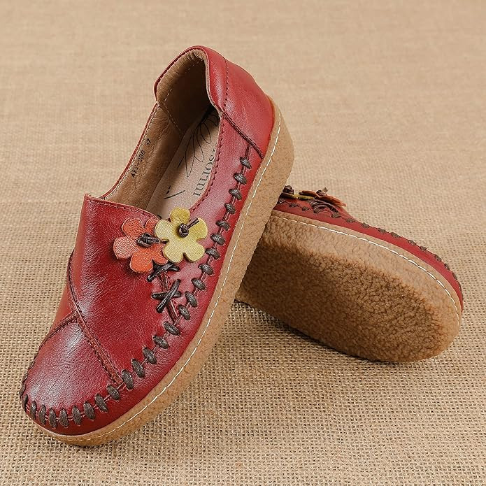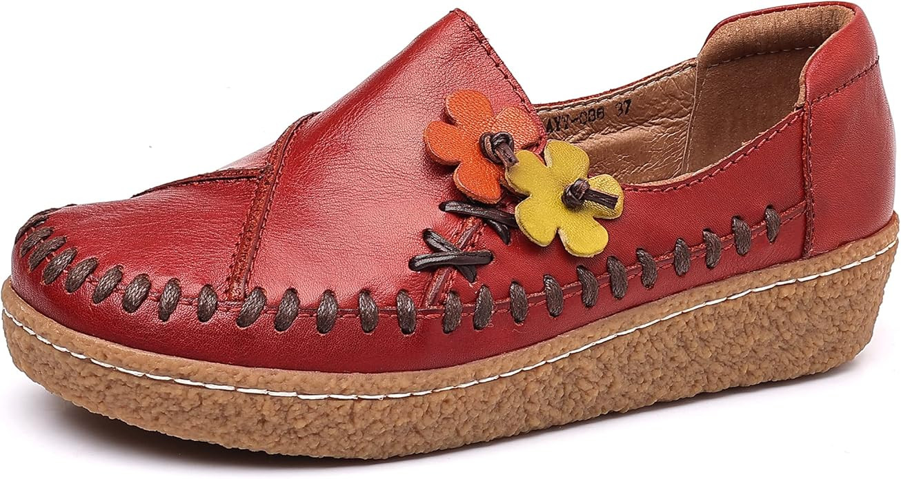 Trsorini Women's Casual Loafers Slip on Multi Color Stitching Leather Shoes Daily Walking