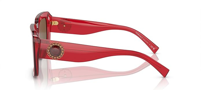 Versace Woman Sunglasses Transparent Red Frame, Dark Brown Lenses, 54MM