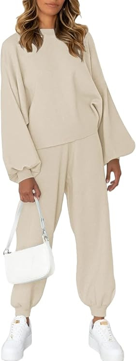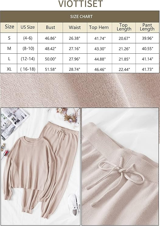 Viottiset Women's 2 Piece Outfits Sweatsuit Casual Knit Pullover Sweater Pajamas Lounge Set