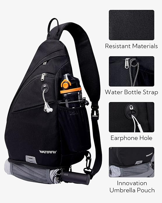 WATERFLY Sling Bag Crossbody Backpack: Over Shoulder Daypack Casual Cross Chest Side Pack