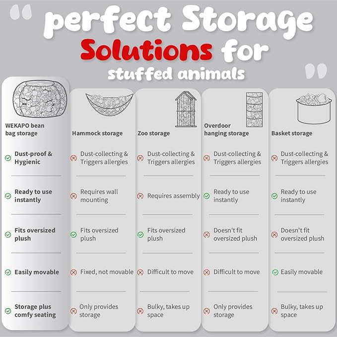 • Wekapo Puts Customers First - Wekapo Stuffed Animal Storage Bean Bag Chairs offer a 90-day unconditional return or exchange policy. Wekapo is dedicated to address any product/service issues and is committed to delivering a 5 star experience for all buyers.