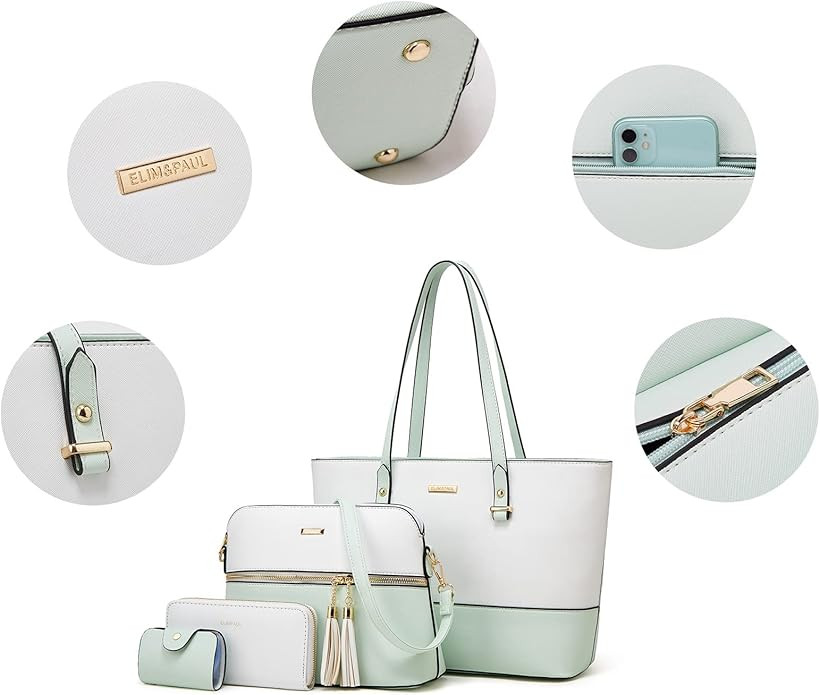 • Tote bag Pockets:One main zipper compartment with one inner zipper pocket,one back pocket and two slot pockets. 4pcs: One large handbag+one messenger Bag:+wallet clutch+card holder. Perfect for dating,shopping,working,traveling, vocation, party and other occasions and keep your daily items well organized.