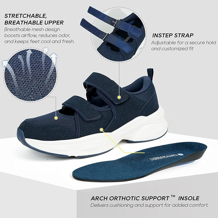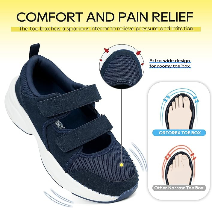 • Roomy Toe Space: Engineered with a spacious toe box to relieve pressure and provide comfort throughout the day, specifically designed for diabetic feet.