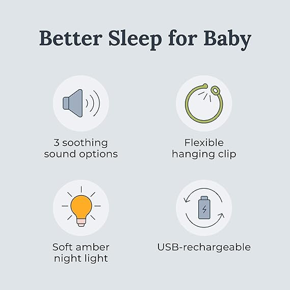 SOOTHING SOUNDS & NIGHT LIGHT: Take control of your sound environment and choose from three calming sounds: bright white noise, deep white noise, or gentle surf, and adjust the volume to create the perfect sleep environment for baby. The Hushh's gentle amber LED night light emits just enough of a glow to comfort and guide you in the night without disturbing baby's slumber.