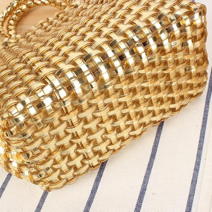 YYW Woven Bag for Women, Shiny Leather Tote Bag, Small Basket Handbag Women Clutch Purse
