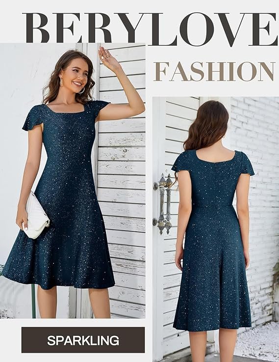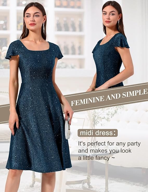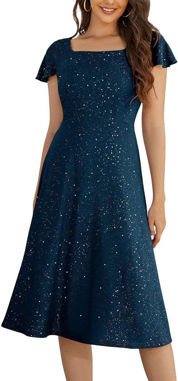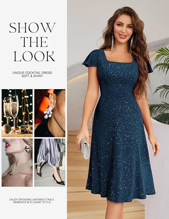 • Unique Design - This square collar vintage dress, adding this year's quite popular flutter short sleeve design, showing a playful and lovely side, square neckline design cleverly reveals a sexy and exquisite collarbone line.It is worth mentioning that the fabric of this modest dress is very elastic and suitable for various figures