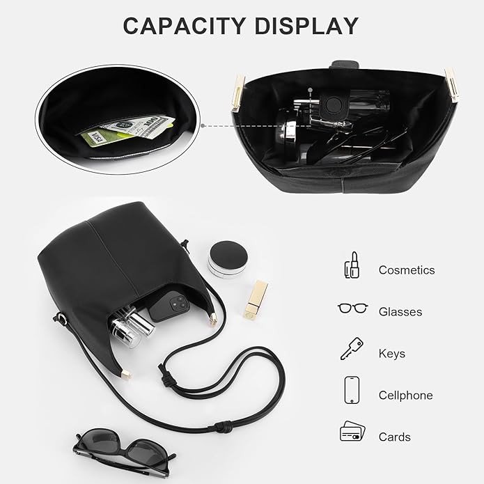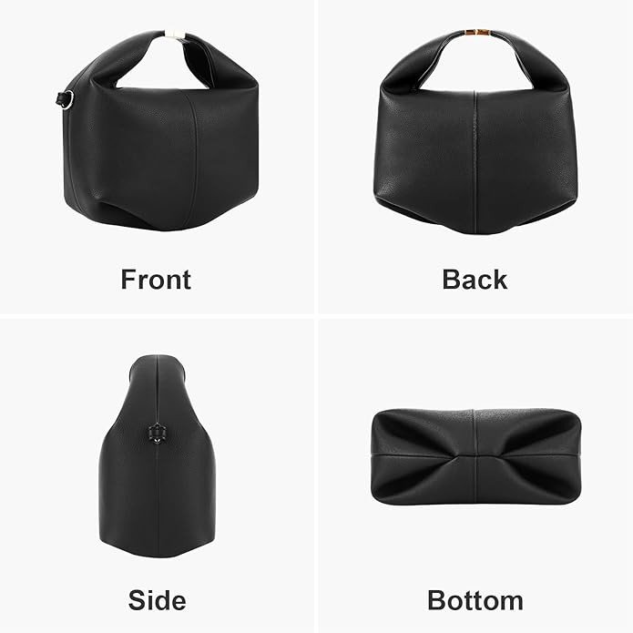 • 【Versatile Carrying Options】You can carry this vegan leather bag by hand, on the shoulder, or wear it crossbody. The top handle can be fastened, giving the bag a unique dumpling-like shape when opened.