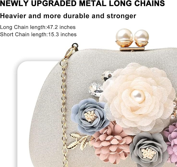• Multi-functional Bags: Womens wedding clutch purse can be used in three ways,hand-held, shoudler, crossbody. This bag comes with two chains, one long and one short, so you can mix and match according to your style