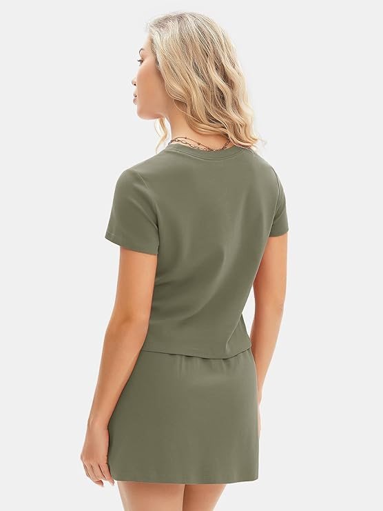 • Inspired Matching:The Women's Short Workout Set 2 Piece is a must-have piece for your spring and summer closet. The top is a short t-shirt with a medium length that will cover your belly fat well while giving you perfect proportions.