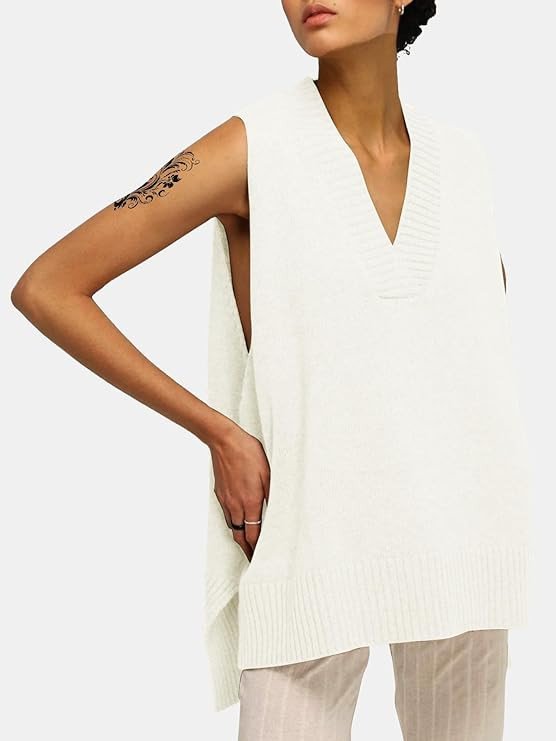 • Features: 2024 trendy casual pullover sweater vests feature with deep v neck, side split, sleeveless sweaters tops, cable knit tank top, solid color tunics, loose fit, high-low hem, pullover tops, sweater vests for women 2024, sleeveless sweater tops for women, business casual outfits, oversized knit tunic pullover sweater vest for women