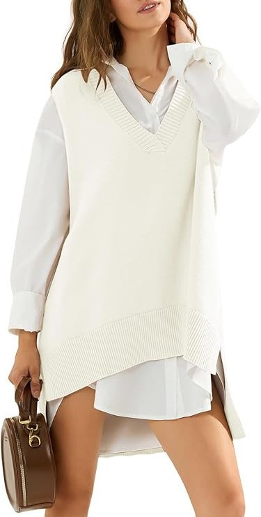 EXLURA Womens Oversized Sweater Vest Knit V Neck Tunic Casual Sleeveless Long Pullover Tank Tops Winter Spring Trendy 2025