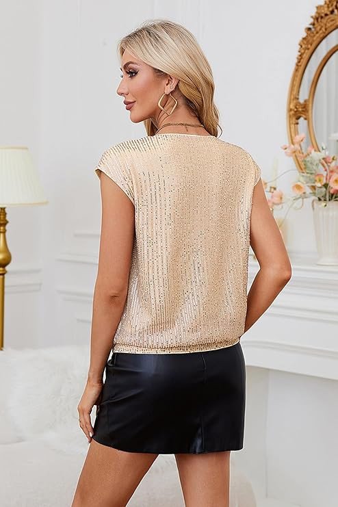 • [SPARKLING SEQUIN DESIGN]: Dazzle at any event with this eye-catching sequined top featuring all-over sparkling sequins that catch and reflect light beautifully. The shimmering fabric adds a touch of glamour to your outfit, perfect for parties, cocktails, or nights out.