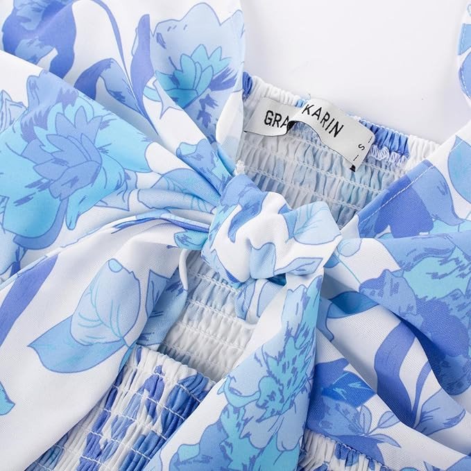 GRACE KARIN Women's 2025 Summer Beach Dress Floral V Neck Tie Front Spaghetti Strap Flowy Long Dress Boho Maxi Dress