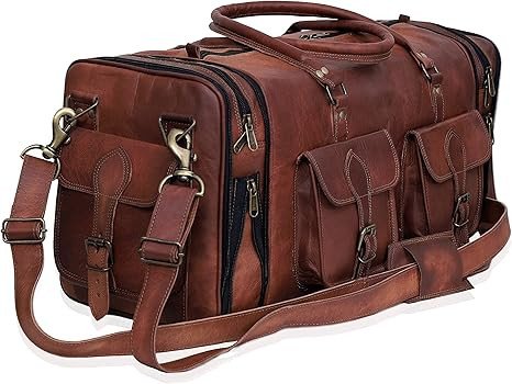 • HANDCRAFTED DUFFLE LEATHER BAG:Crafted from the finest full-grain leather, the bags exude luxury and durability. Each bag is meticulously handmade lined with sturdy canvas, ensuring longevity and resilience against everyday wear and tear. What sets the products apart is the dedication of skilled craftsmen who pour their expertise and passion into every stitch. With meticulous attention to detail, these handcrafted vintage style leather bags are more than just accessories it adds depth to a personality.