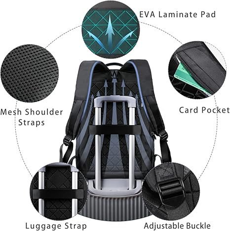 【Comfortable & Durable】This blue laptop backpacks for men is made of waterproof sturdy Oxford cloth with durable metal zippers. The back side is built with high quality EVA material, which is comfortable and soft, gives you maximum back support. Breathable and adjustable shoulder straps with foam pad help relieve the stress of shoulder.