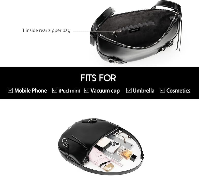 • ZIPPER CLOSURE Over the Shoulder Purse: The leather purses for women boast a convenient zipper closure to keep your belongings safe, while a hidden gem awaits inside a discreet zipper pocket specifically designed for your smaller essentials like credit cards and keys. No more frantic digging – everything has its place, allowing you to grab and go with confidence and effortless style