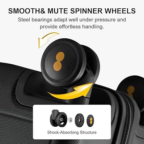 More Effortless Traveling: This suitcase equipped with 8 silent universal spinner wheels and aluminum telescoping ergonomic handle with 4 levels for effortless control and maneuverability; Equipped with top and side easy grab handles; Bumper feet on side for protecting the case