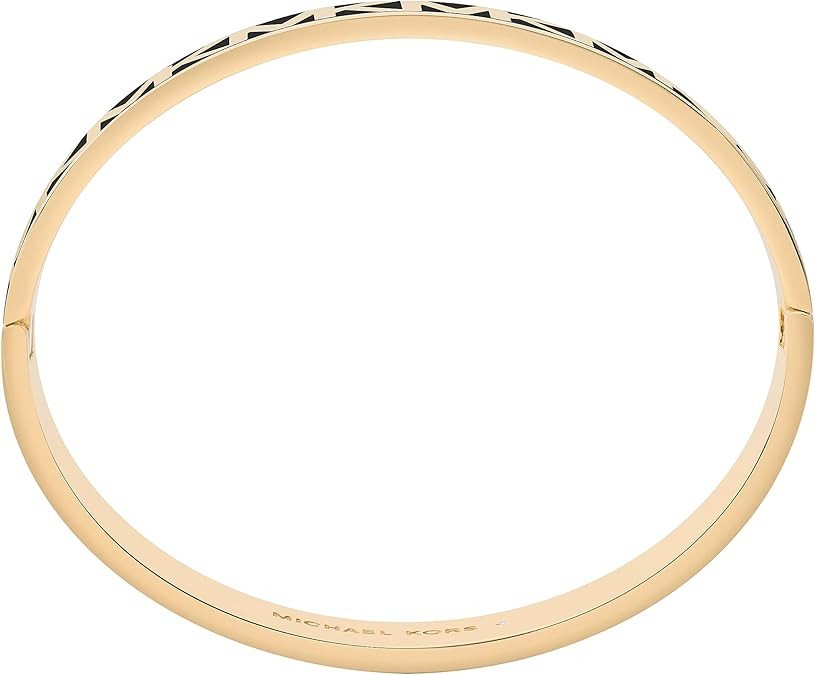 Michael Kors Brass and Enamel MK Logo Bangle Bracelet for Women, Color: Gold/Black (Model: MKJ8110710)