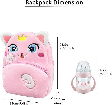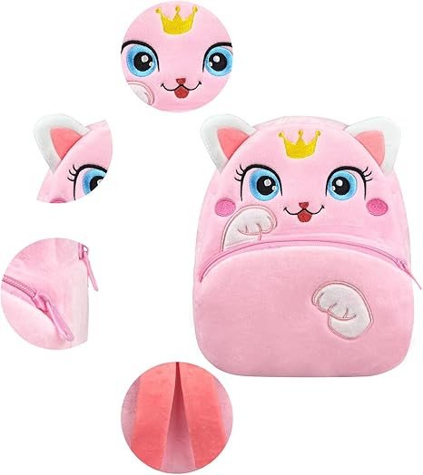 NICE CHOICE Cute Toddler Backpack Toddler Bag Plush Animal Cartoon Mini Travel Bag for Baby Girl Boy 2-6 Years(Cute Pink Cat)